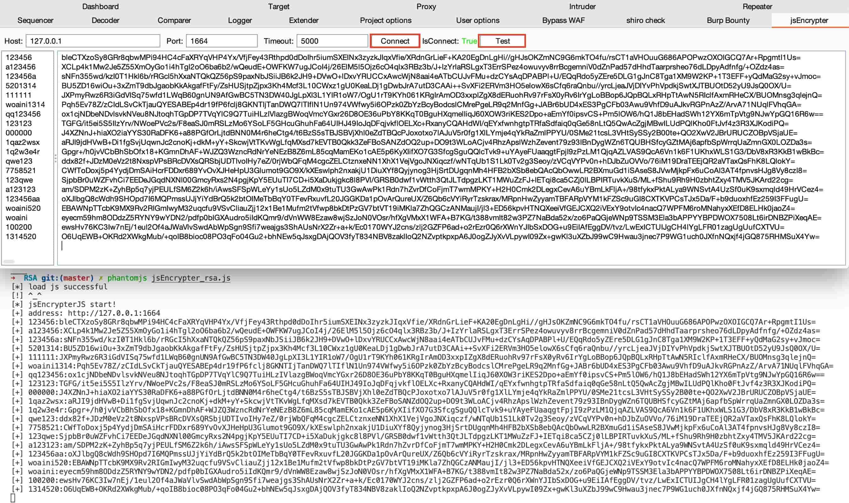 然后将jsEncrypter的Release好的jar包下载下来,用burp载入,然后点击Connect和Test测试一下。